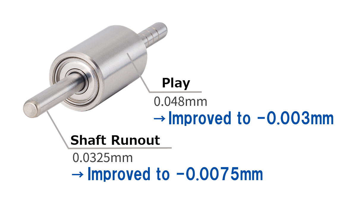 This product is a testament to the expertise that MinebeaMitsumi has cultivated over the years. We manage the delicate clearance within the bearings to apply the right preload and utilize assembly and bonding techniques to minimize shaft runout and play. We achieve this high level of precision even on assemblies using tiny bearings with outer diameters of just 4-5mm.