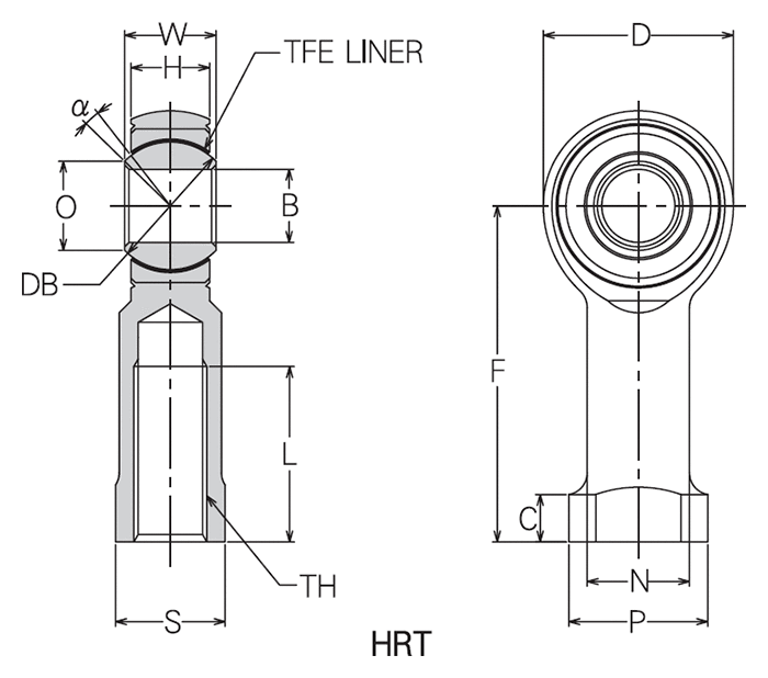 | HRT | Chromium-Molybdenum Steel Zinc Plated | 410 Stainless Steel / Heat Treated | 440C Stainless Steel / Heat Treated | PTFE / Fabric |