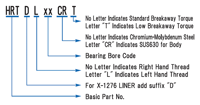 | HRT-CR | SUS630 Stainless Steel Passivated | 410 Stainless Steel / Heat Treated | 440C Stainless Steel / Heat Treated | PTFE / Fabric |