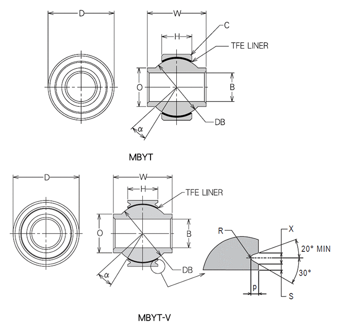MBYT, MBYT-V 410 Stainless Steel 440C Stainless Steel PTFE / Fabric -