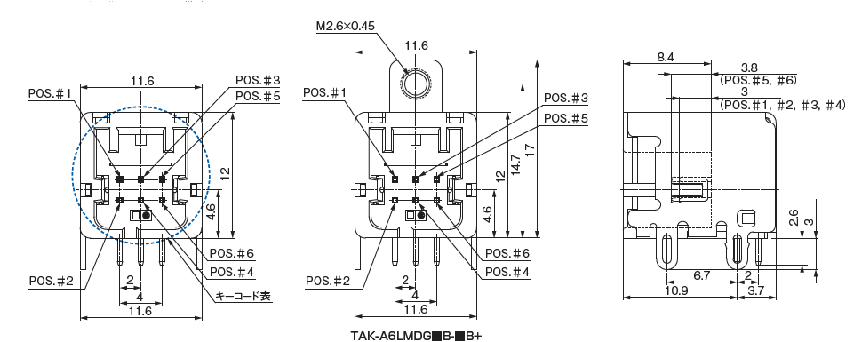 Parts No. TAK-A6LMDG#B-*F+ Pin Count 6 Pich