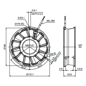 BearingsLead Wire: UL3266 AWG22 +: Red−: BlackSpeed Control: YellowSpeed Signal: White