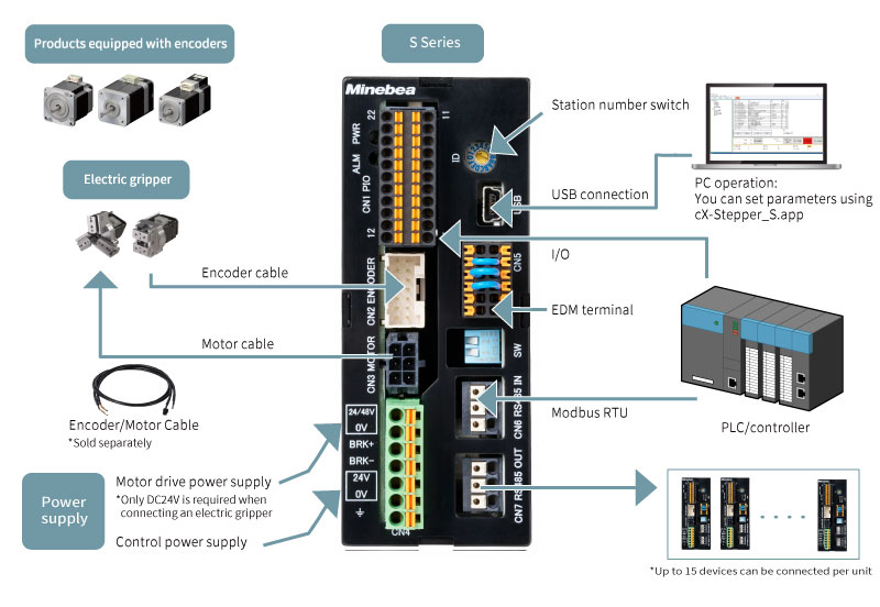 When combined with the specified encoder-equipped stepper, this driver system achieves "closed-loop control." We offer a comprehensive lineup of drivers tailored for various FA networks. Furthermore, all models support I/O and pulse train operation. This driver is compatible with the motors listed on this page, and a configuration app is available free of charge.