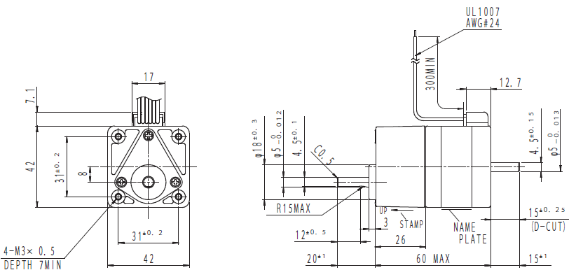 *Direction of rotation of the motor and that of the gear output shaft are the same for the gear ratios 1:3.6,1:7.2,1:9,1:10,1:50 and 1:100.It is the opposite for 1:18 and 1:36 rear ratio.