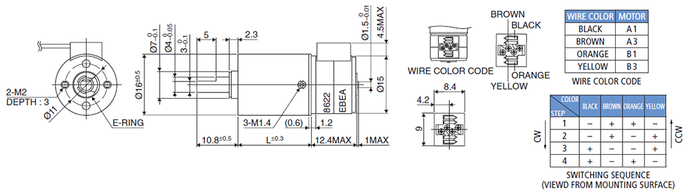 | 15.0 | Nd-Fe-B bonded magnet (MS70) | 100 | 500 | 300 | 2-2 phase | 10.0 | 100M[Ω]Min. at DC500[V] | AC500[V] 1[min] | Class E(Except lead wire) | 65 | -10 | 50 | 0.03 | *6[mm] from flange | 0.25 |