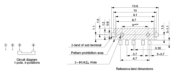 Click section: 1.5±1.0NLife 50,000cycles Pcs/Reel Horizontal : 5,000pcs