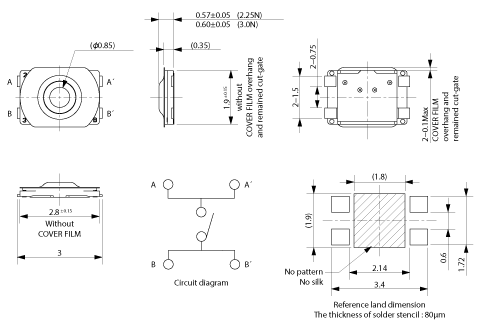 STU-060A30AX : 300,000 timesPcs/Reel STU-057A23AC : 20,000