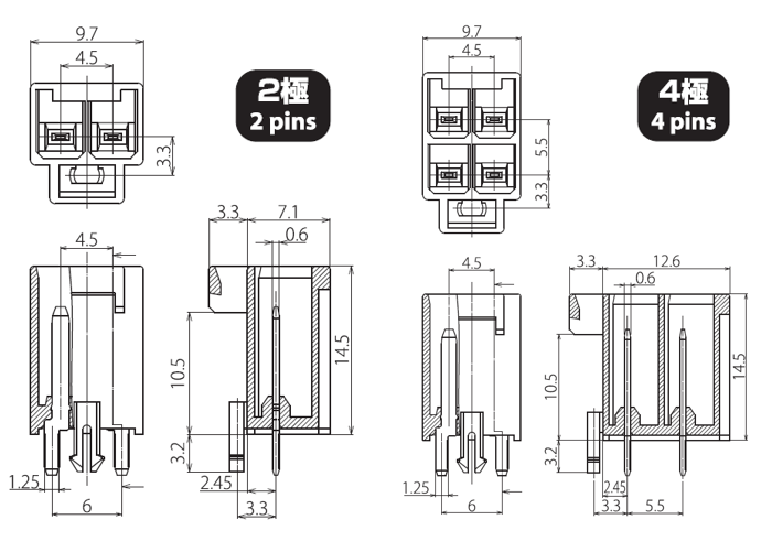 1. 基板用6.00mmピッチのポッティング対応基板用コネクタ