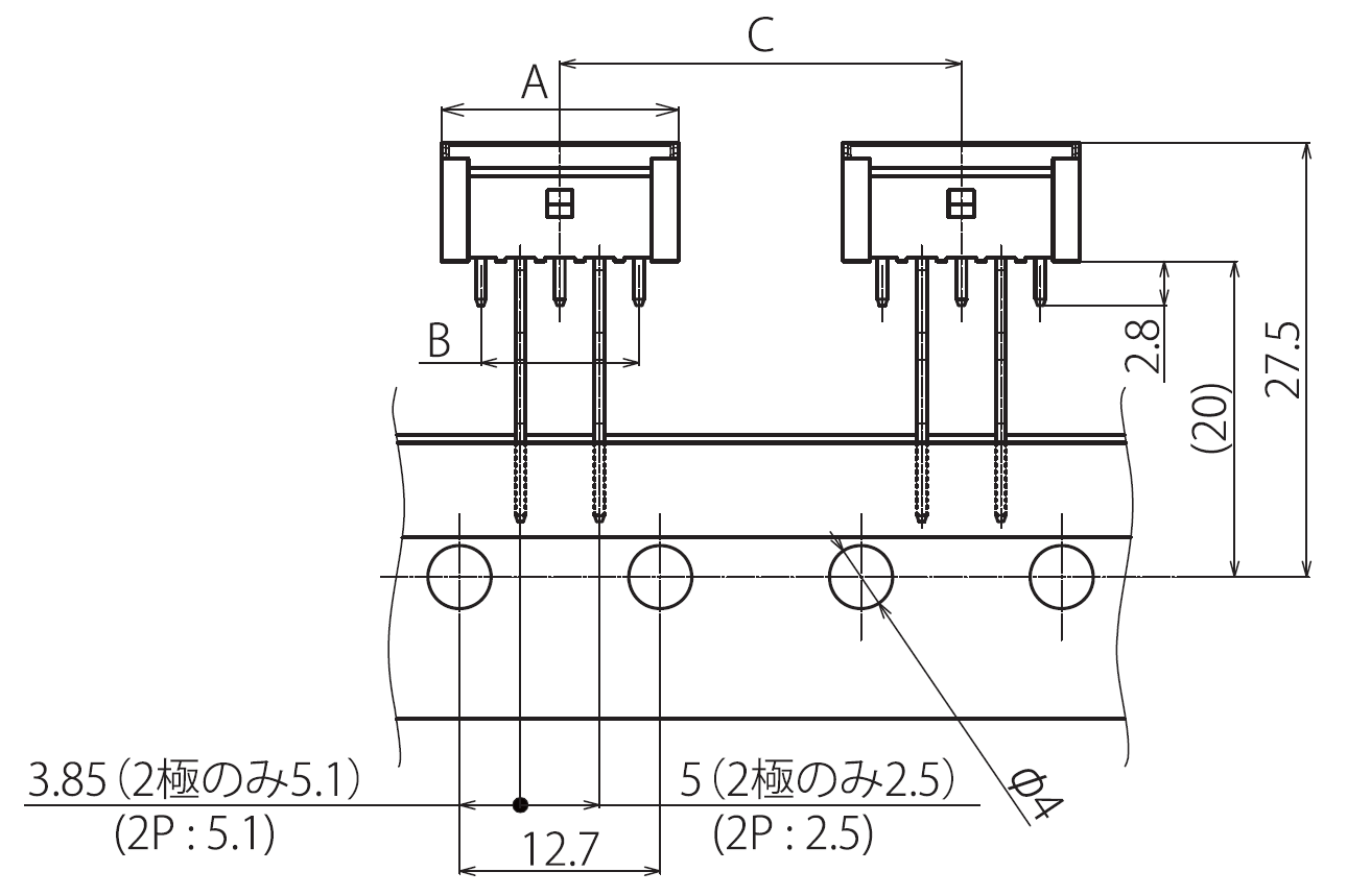 [mm]2.5 実装/結線方法 ラジアルテープ 定格電流