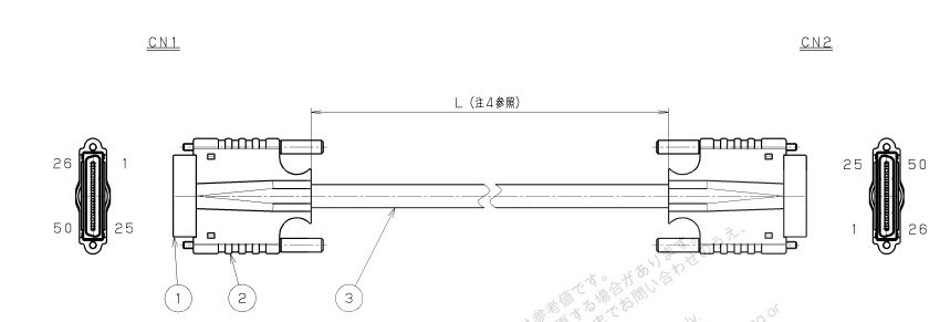 型式 HDR-AS-0146-L*00+ 芯数 50 ピッチ