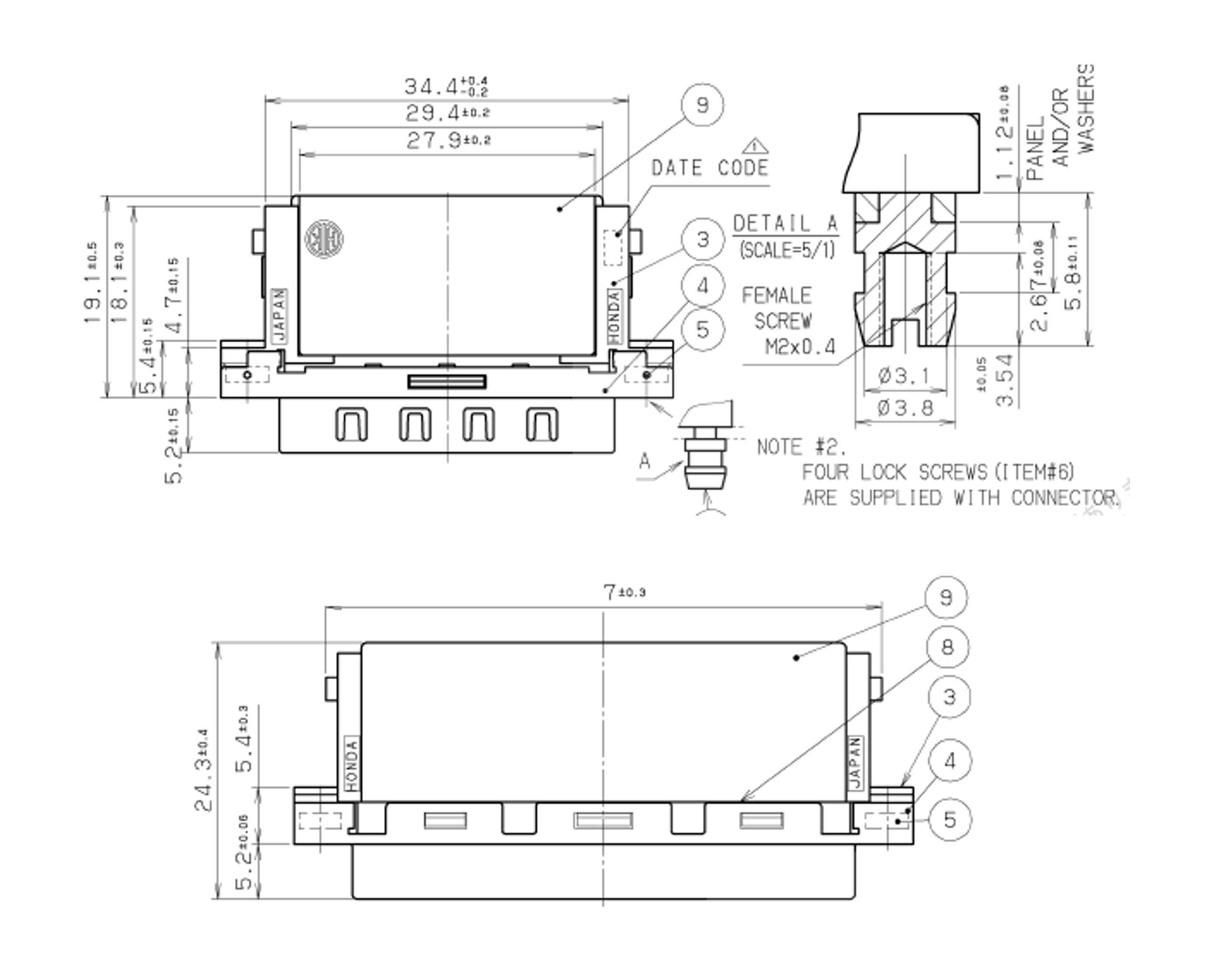 [mm]0.8 実装/結線方法 二段カバー付きタイプライトアングルDIP 定格電流