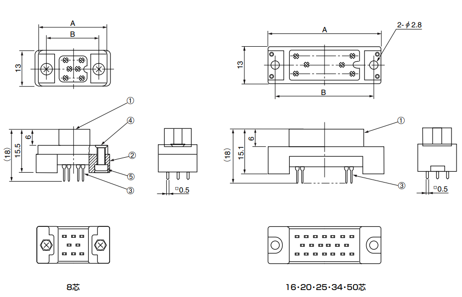 型式 MR-()FD2* 芯数 8,16,20,25,34,50 ピッチ