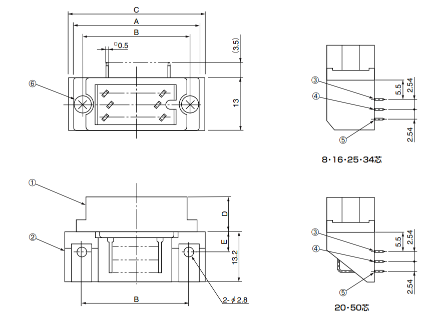 型式 MR-()MA* 芯数 8,16,20,25,34,50 ピッチ