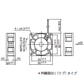 *1:Average Values in Free Air□=ケーシング形状 C:リブタイプ、G:フランジタイプ
