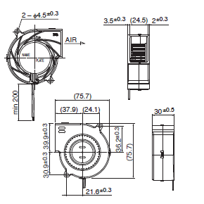 リード線:UL1007 AWG26 +: 赤 -: 黒
