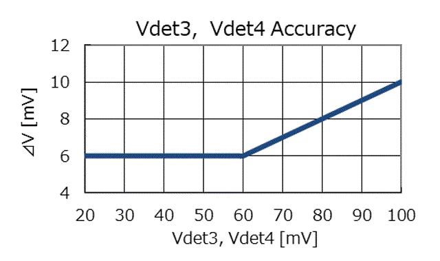 ●短絡検出電圧 100mV~300mV, 10mV 精度±8%