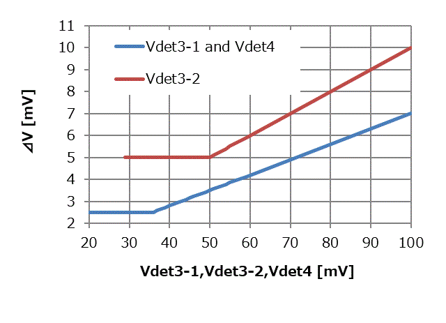 ● 放電過電流検出電圧2 30mV to +100mV, 1mV steps 精度※1