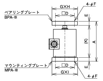 CCP1(A)シリーズベアリングプレート+マウンティングプレート装着寸法図