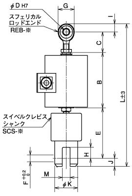 TCP1(A)シリーズ スイベルクレビスシャンク+スフェリカルロッドエンド装着寸法図