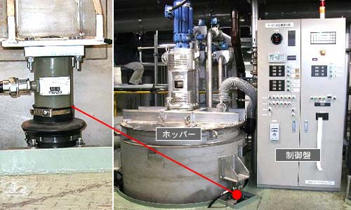 排水洗浄用の薬品を製造する工程で、約20種類の原料から必要な品種を選び、投入・混合・排出・搬送の制御を行います。