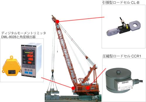 角度検出器・変位検出器と合わせて、クレーンの転倒防止装置に使用。