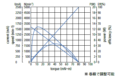[hour]32.0 3200 80.0 6.7(at 40mN・m) 65(at 12mN・m) 2700 1600 5000 ※値は12V時の代表特性です。