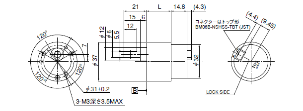 [mN・m]1/10 Spur 金属 1 20.5 35.3 12 415 100 36 384 250 98 98 1/25 Spur 金属 2 23 37.8 12 166 100 81 154 250 196 196 1/60 Spur 金属 3 25 39.8 12 69 100 175 64 250 294 441 1/100 Spur 金属 4 25 39.8 12 42 100 262 38 250 294 735 1/120 Spur 金属 4 25 39.8 12 35 100 315 32 250 588 882 ギアユニットST-35Typeの仕様です。モーターの仕様についてはBKL4をご覧ください。