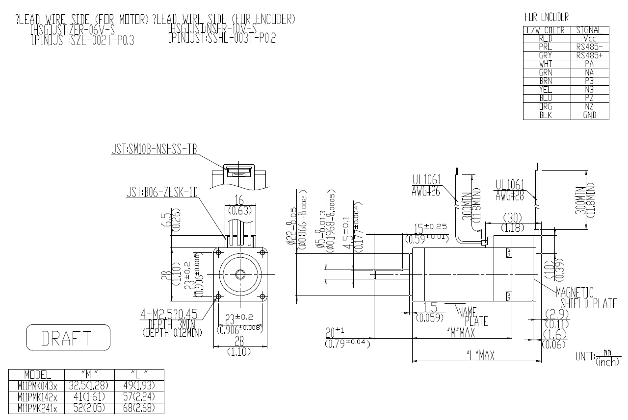 M11PMK043CSMA00 28 49 1.5 1.3 100 8 4.4 16000 170 200 M11PMK142CSMA00 28 57 1.5 1.5 145 13 5.4 16000 200 200 M11PMK241CSMA00 28 68 1.5 1.7 200 16 8 16000 270 200 M17PMK337CSMA00 42 52 2 0.9 290 50 11 16000 320 1000 M17PMK432CSMA00 42 62 2 1.2 510 75 16.7 16000 420 1000 M17PMFA34CSMA00 42 74 2.6 1 690 162 30 16000 580 1000 M23KMK358CSMA00 56.4 64 1.7 1.9 800 180 29 16000 660 1000 M23KMH041CSMA00 56.4 69 2 0.9 1300 320 54 16000 750 1000 M23KMK744CSMA00 56.4 91 3 0.7 1800 490 93 16000 1130 1000 モーター外観図