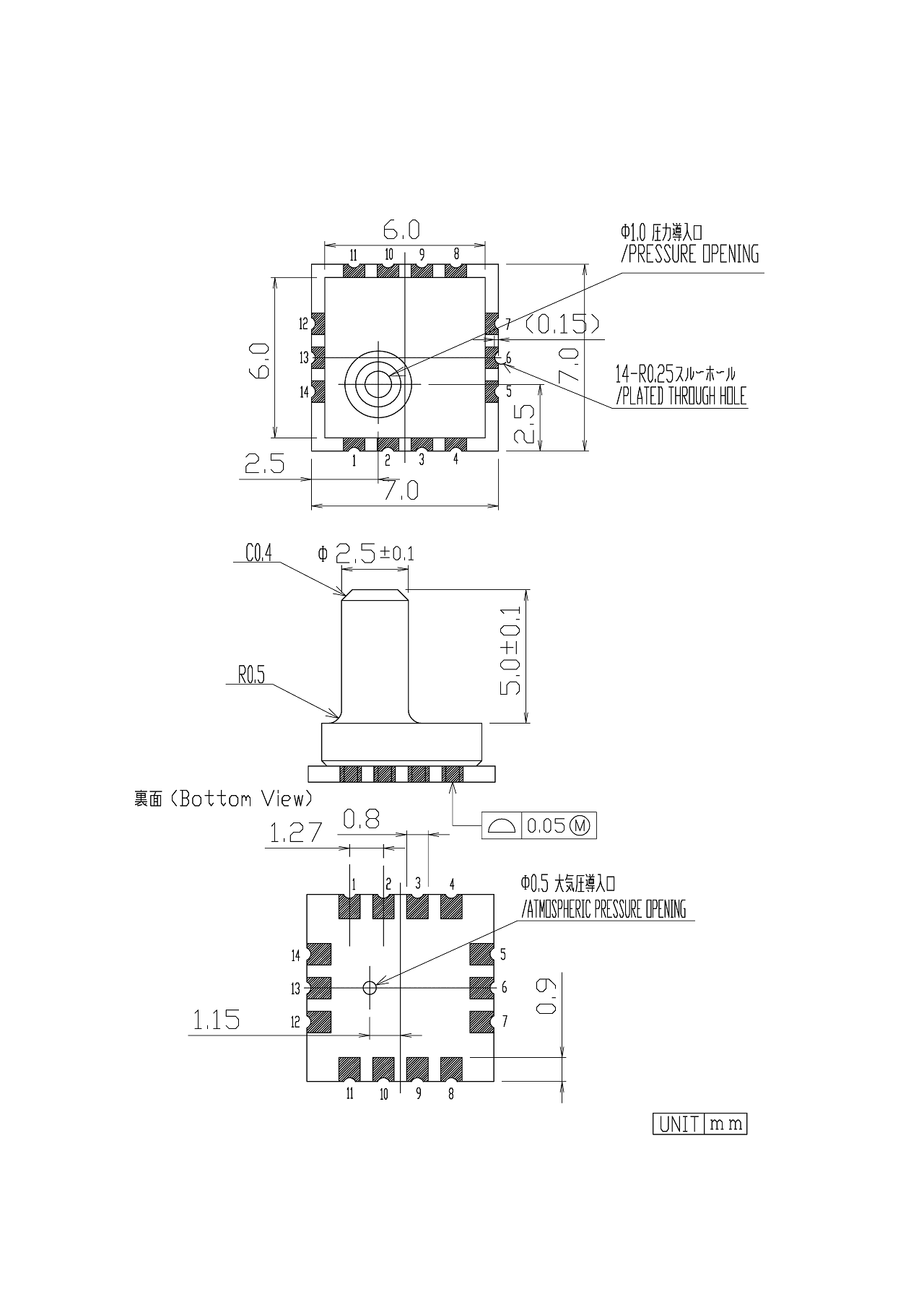 MEMS技術を用いた小型ピエゾ抵抗式圧力センサ。16bit分解能の⊿ΣADコンバータを搭載し、高精度な圧力値をデジタル値で出力します。インターフェースにはSPIを採用し、マイコンとの通信を行ないます。また内蔵の温度センサとEEPROMのデータを用いることで、外部マイコン上の専用ソフトウェアで温度変化による特性変動を補正できます。