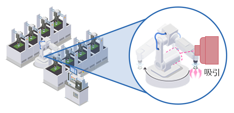 さまざまなワークを協働ロボットやベルトコンベアなどと組み合わせて吸着搬送します。