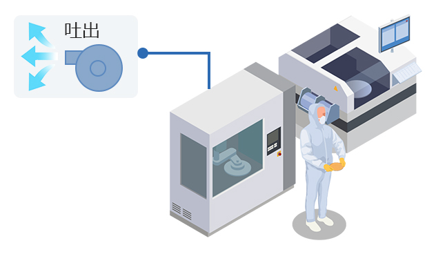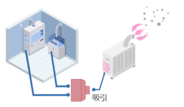 空気中のごみ・チリを吸い取る用途に使用します。設備内のほか、局所的に後付け設置も可能です。